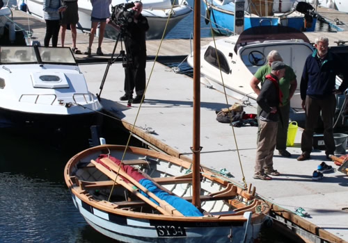 Just before she was sent across the Minch for the work, her builder gave a very moving presentation in the Education Department's workshop in Inaclete Road which was well attended. Stated aims of Falmadair have education as well as heritage and recreation at their heart and this was a fitting way to fulfil that part of our project, thanks to John Murdo's commitment and spirit. Volunteers have crossed the Minch or travelled from other parts to assist Mark by carrying out painting and timber treatment at each stage. She came 'home' for her final fitting out in 2017. She now is in commission, sporting the very fine new sail purchased with a specific donation from the Port Authority.
