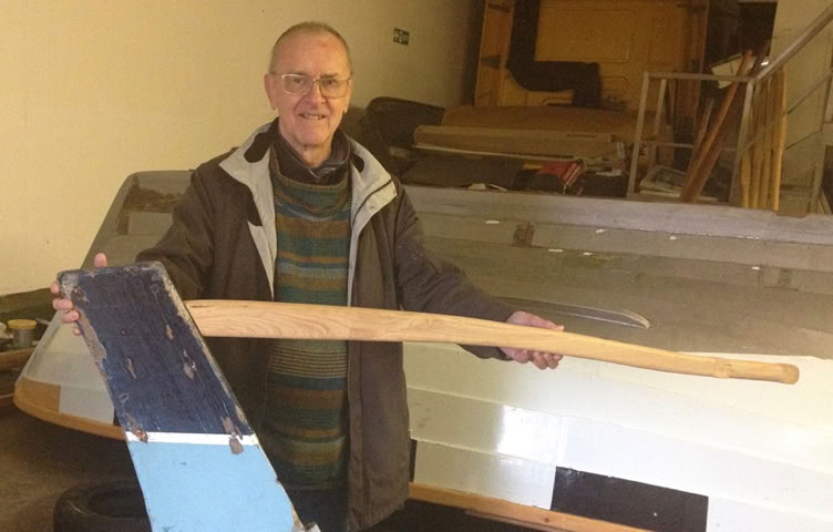 John Mitchell with the new tiller he made for Callicvol